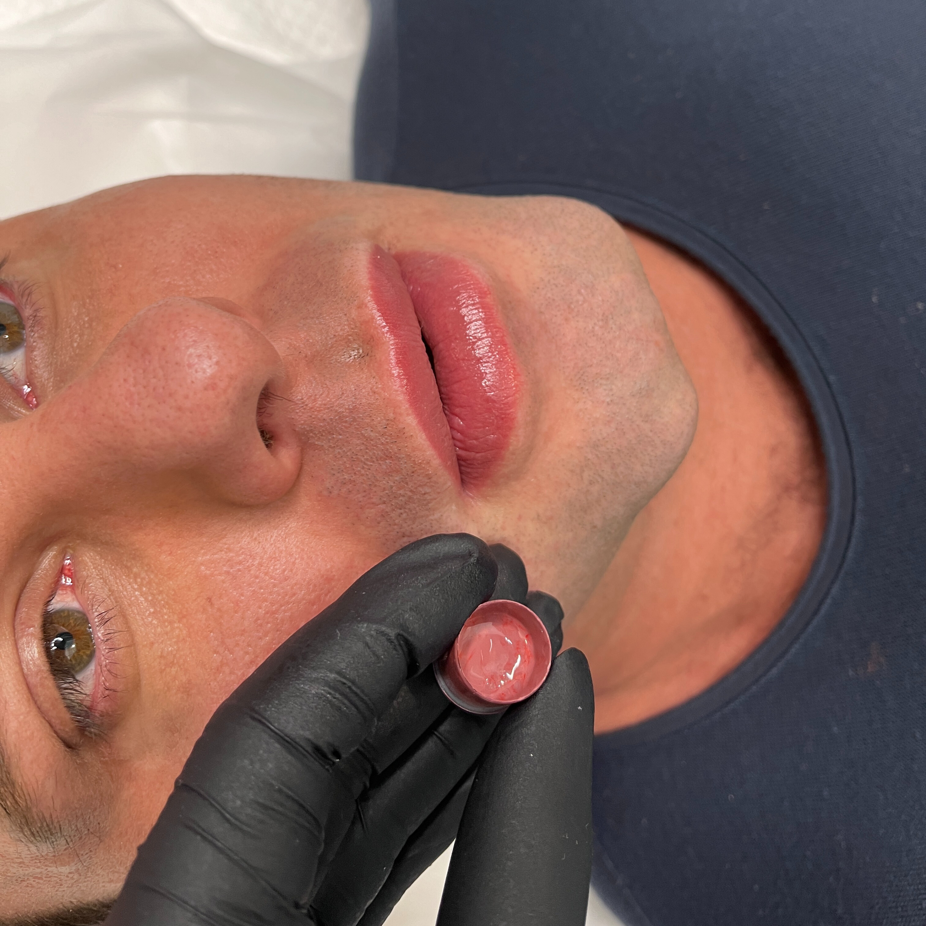 This isn't female lip blush with different marketing. Male lips have thicker skin, different healing patterns, and require different saturation levels. Use female techniques on men and you'll get that "lipstick look" every time.
